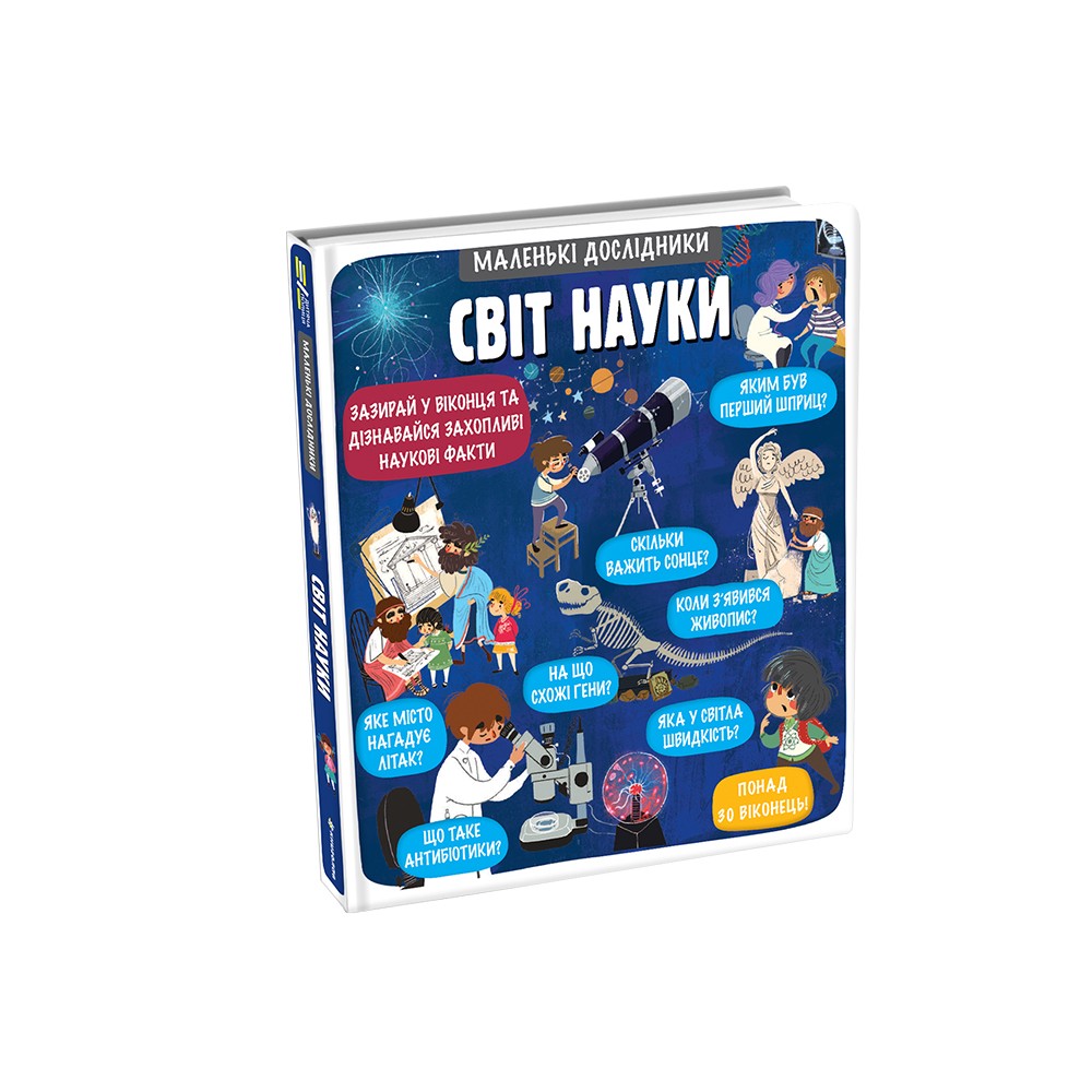 «Світ науки» — це десята книжка з улюбленої серії «Маленькі дослідники» у видавництві #книголав. Перше видання «Моє дивовижне тіло» стало абсолютним бестселером і поповнило домашні бібліотеки майже 30 000 українців, разом із ним до лідерів увійшли: «Світ тварин», «Динозаври», «Космічний світ», «Підводний світ» та «Транспорт».