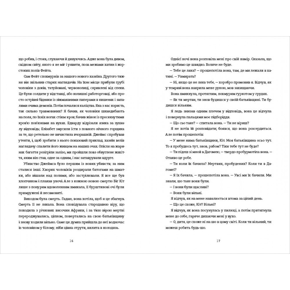 Це роман про свободу і залежність, про рабство у всіх його проявах, про витривалість і силу розуму. Написаний від першої особи, текст вражає глибиною переживань, реалістичними деталями й мовною майстерністю. Перед читачем — епічна розповідь про пошук себе у світі, який спершу не залишає на це жодного шансу.