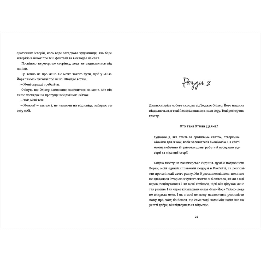 Фінальна частина трилогії про Даяну Вуд. Даяна повернулася з Парижа й чітко вирішила, що працюватиме над стосунками з Олівером, відвідуючи психотерапевта. І найперше їхнє завдання — жодного сексу. Тепер вони ходять на старомодні побачення й відчувають, як між ними посилюється емоційний зв’язок. Усе, здавалося б, чудово, але таємниця «Хтивої Даяни» тисне на жінку — як Олівер відреагує на те, що вона — засновниця сайту про потаємні жіночі бажання? Даяна хоче стабільності в житті, але разом з тим прагне, щоб її бізнес процвітав. Чи вдасться їй цього досягти без утрат?