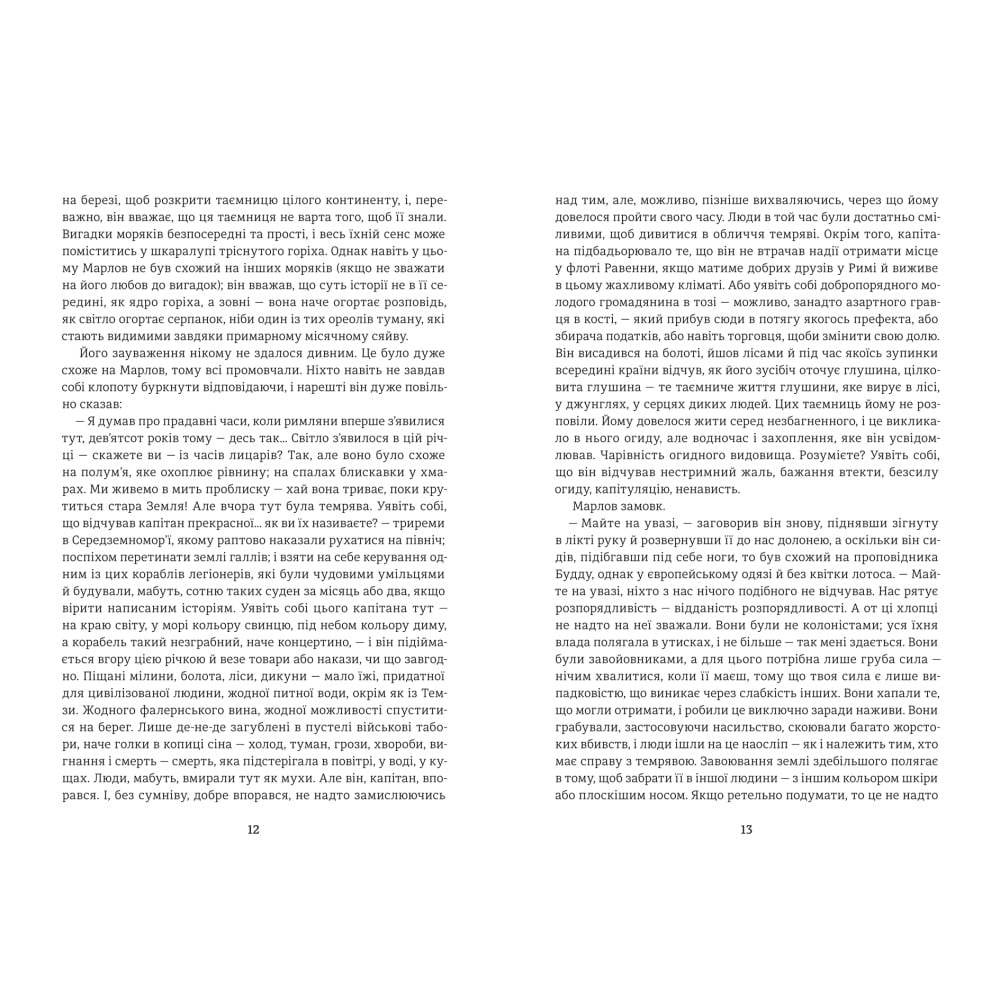 «Серце пітьми» — це подорож у глибини людської свідомості, де світло цивілізації стикається з тінями колоніальної жорстокості. Марлов вирушає річкою вглиб Африки, але справжня експедиція відбувається всередині нього самого: пошук загадкового Курца перетворюється на зіткнення з темними силами влади, моралі та власної душі.